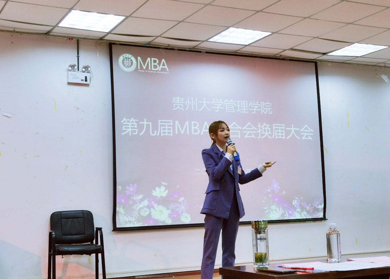 之后,主持人宣读贵州大学第九届MBA联合会换届大会通知及报名候选人名单,候选人按照抽签顺序依次发表5-10分钟竞选演讲。