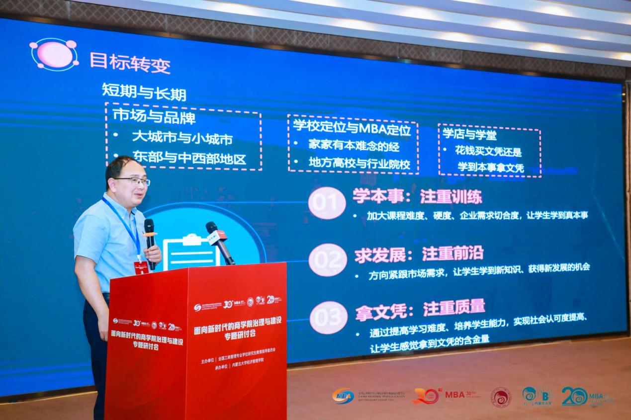 2021729日,由全国工商管理专业学位研究生教育指导委员会(以下简称“全国MBA教指委”)主办,内蒙古大学经济管理学院承办的“面向新时代的商学院治理与建设”专题研讨会在呼和浩特市成功举办。乐动官方网站副院长周莉莉教授和MBA教育中心副主任何跃勇老师参加了此次研讨会